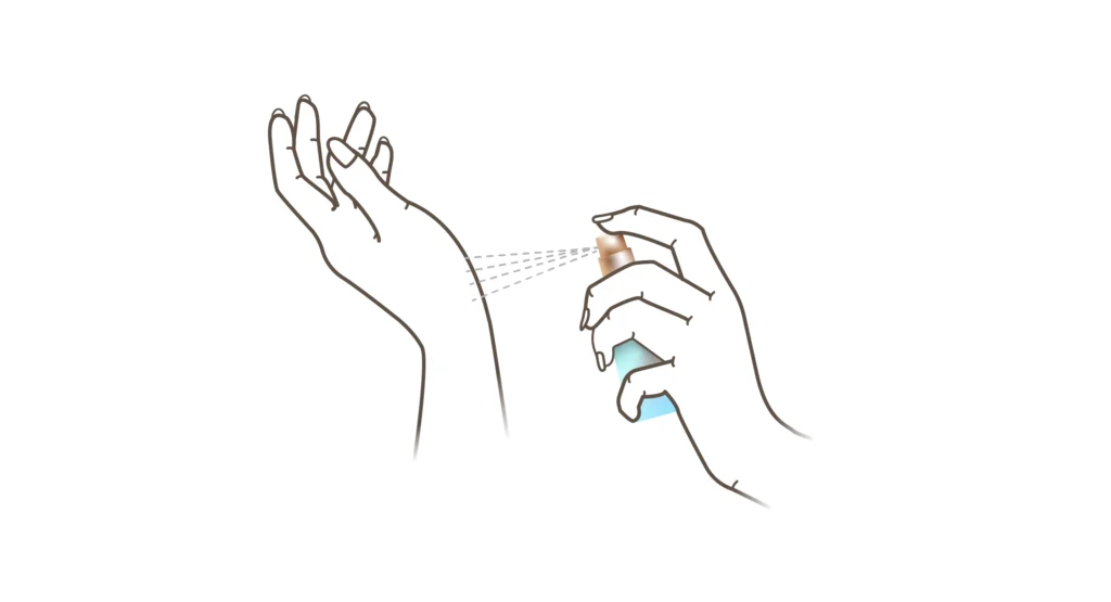 Spritz your fragrance onto pulse points. Also, try spraying on the nape of your neck or behind your knees.